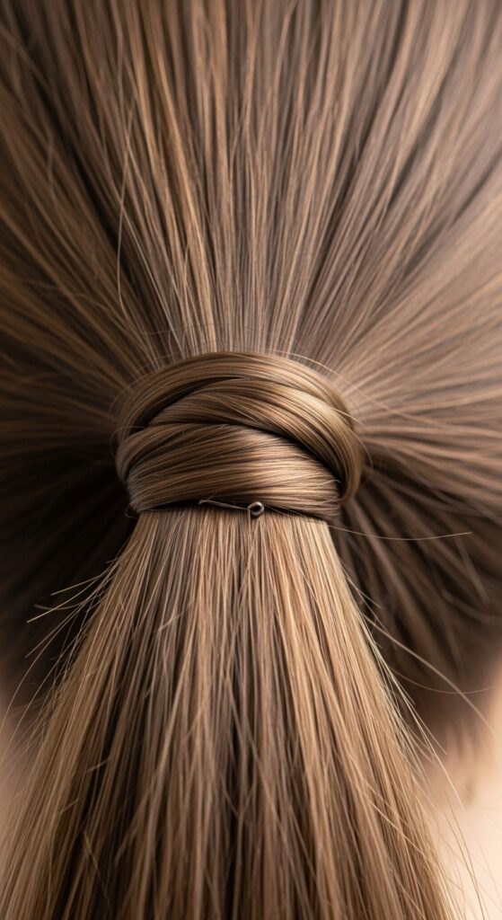 A visible plastic hair tie can cheapen the whole look. After securing your pony, take a small, thin section from underneath it. Wrap this section around the base to hide the tie.