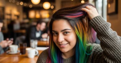 You can also use a tiny bit of iridescent hair gel on the baby hairs around your face for a cyber, wet-look effect. It’s a cool way to mix organic texture with a digital-inspired vibe.