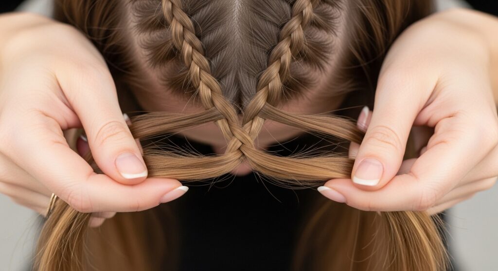 Move to the next section. This is where the magic happens. Complete one braid, then start the one right next to it. The braids should sit parallel, like elegant columns climbing your head.