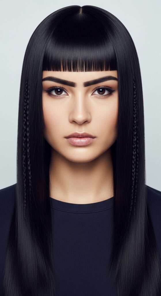 You can ensure the bangs, which are often more porous, get an even coat so they match the rest of your hair perfectly, maintaining that graphic, beautiful shape.
