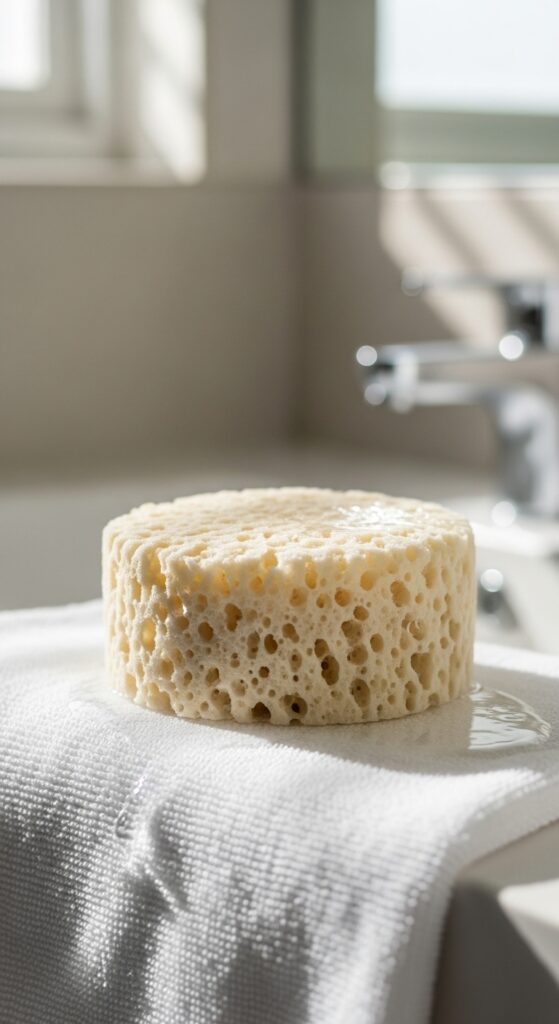 It’s exactly what it sounds like: a small, reusable sponge made from natural sea sponge. It’s not the scratchy kind you use for dishes! These are soft, porous, and have a unique, irregular texture.