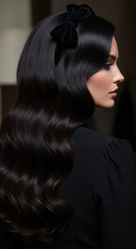 Romantic goth hairstyles are deep, lush, and full of texture—think velvet ribbons and soft curls. But even this look needs control. You don’t want your dark curls to look fuzzy or dry.