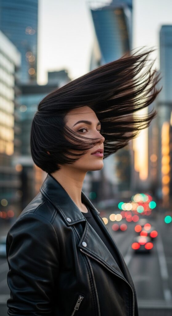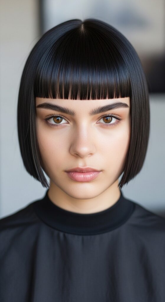 Use an anti-frizz polish as your final step to tame any flyaways and add a severe, glossy finish. It makes the cut look modern and editorial, not like you just rolled out of bed. It’s the difference between costume and couture.