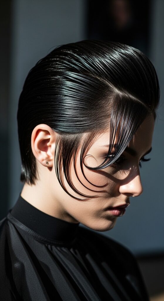 After straightening, use a polish to absolutely seal the cuticle. This ensures every line is razor-sharp and glassy smooth. It amplifies the dramatic, beautiful shape of the cut and makes it look incredibly sleek and modern.