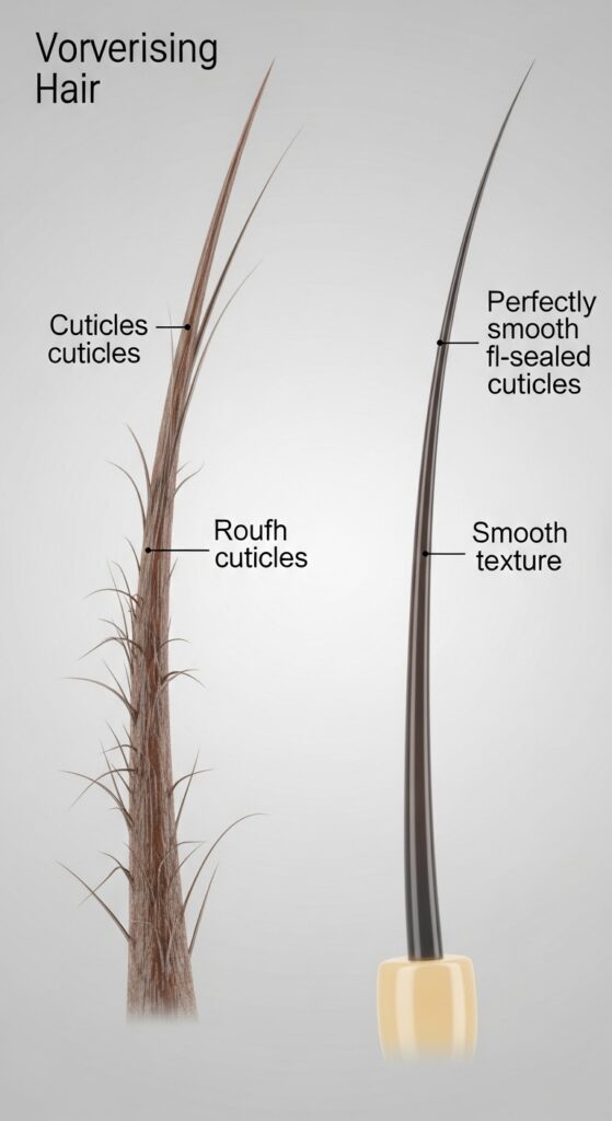 Imagine your hair strand is like a shingle roof. When the shingles (cuticles) are lying flat, everything is smooth and water runs right off. When they’re lifted, it’s rough, catches on everything, and lets moisture in and out wildly.