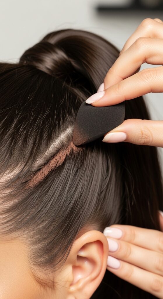 This is where the sponge tip truly becomes invisible magic. For wider part lines or spots where your scalp shows more, a matching powder is your best friend.