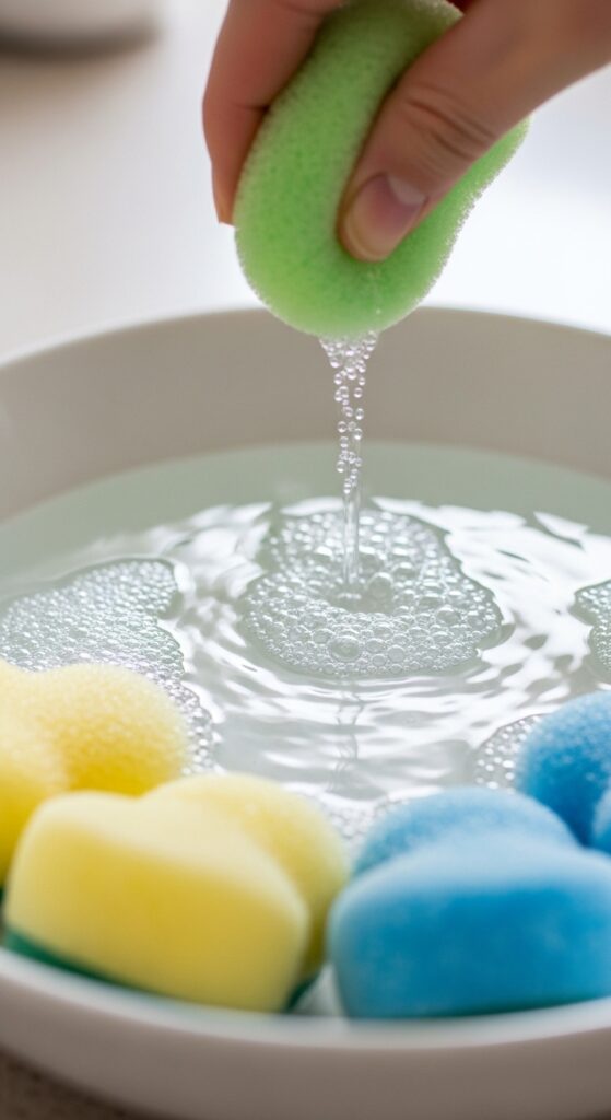 While they’re disposable, you can clean them a few times. Use a gentle makeup brush cleaner or mild soap. Gently squeeze the sponge in the solution until the water runs clear.