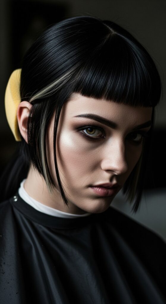 Use the sponge to softly contour this area. It adds depth and makes the dramatic cut look intentional and grown-up, not unfinished. This technique works for any bold cut, like a hime cut with blunt bangs.