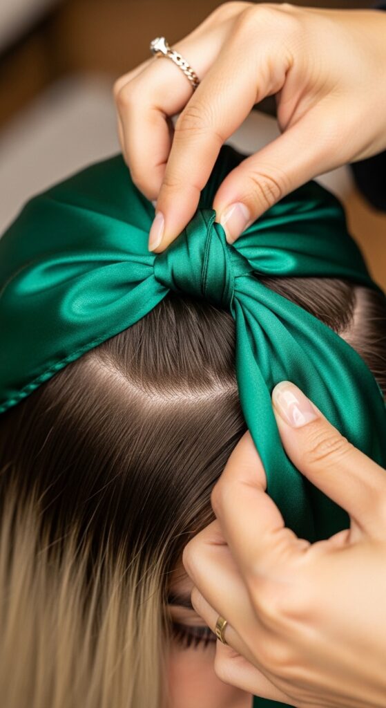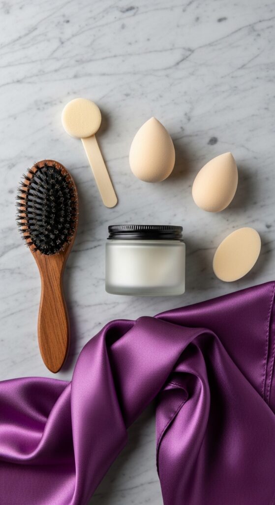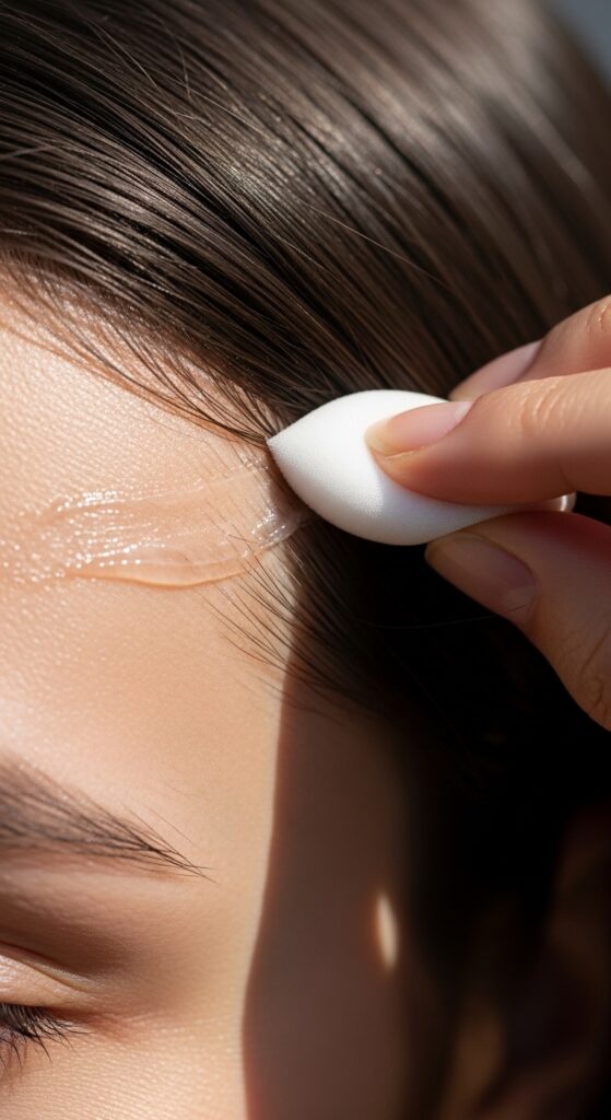 Next, you’ll need your sponge tip applicators and a soft brush (a toothbrush or a dedicated edge brush works). Finally, have a satin scarf or headband ready for setting. That’s it! No fancy equipment required.