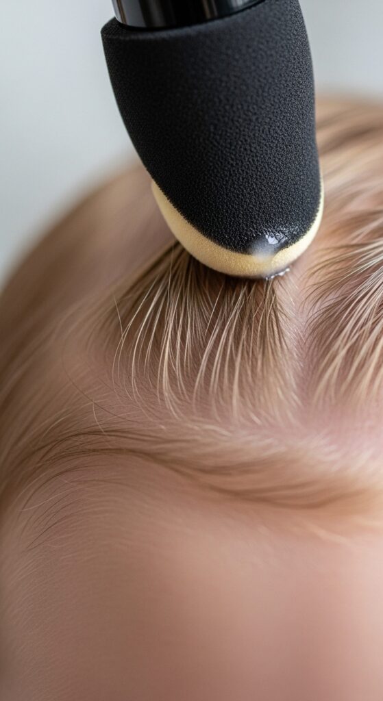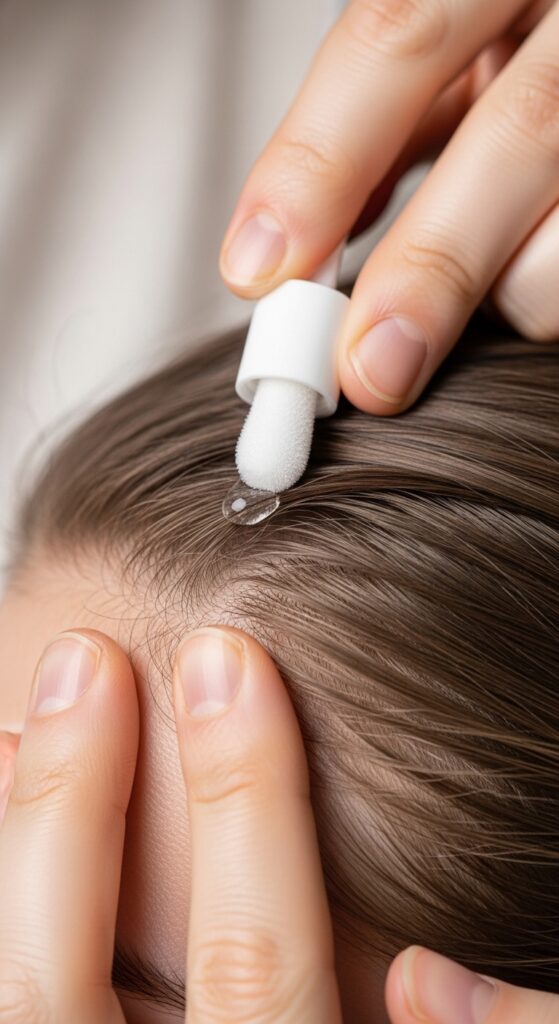 3. Apply: Dab product at the hair root.
