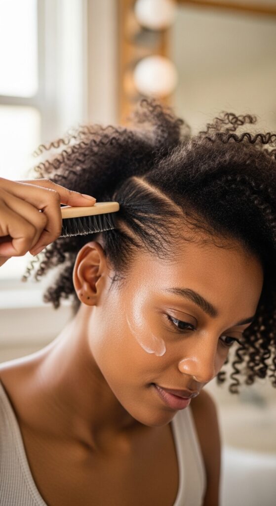 You only need a few things to get started. First, grab your favorite edge control or a light-hold styling cream. Something that’s moisturizing and not too sticky is ideal.