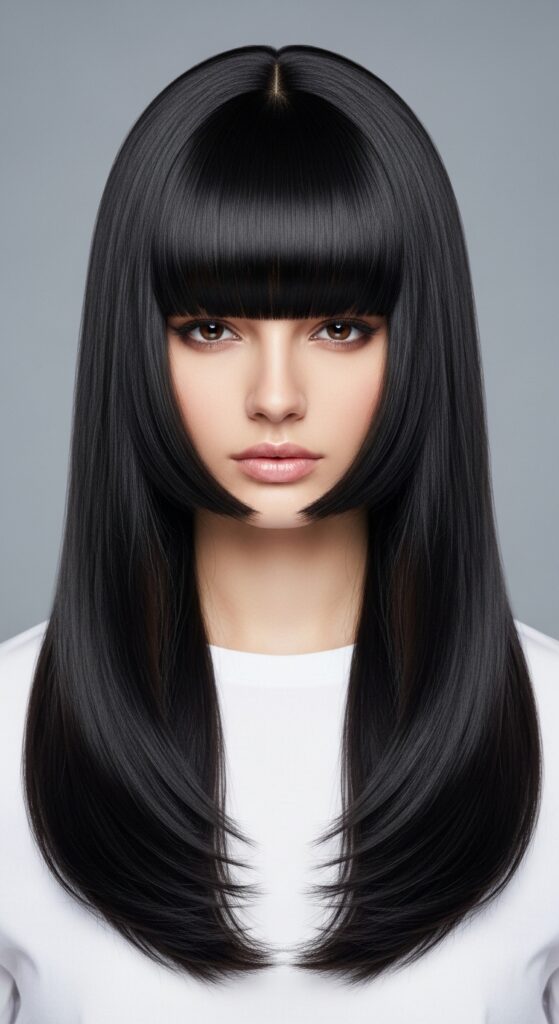 The hime cut is bold and structured. The blunt, straight-across bangs and lengths demand hair that is perfectly balanced, not weighed down.