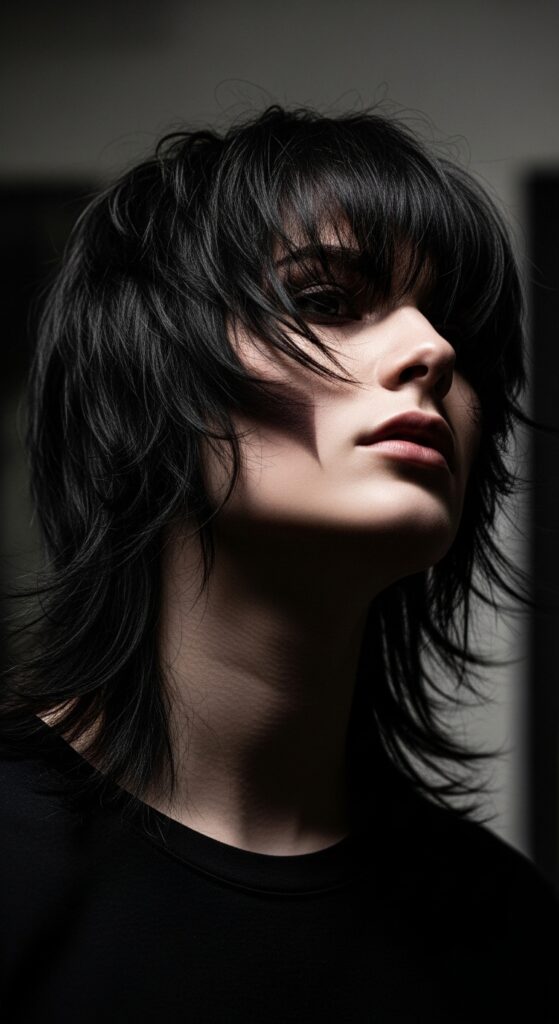 The modern vampire haircut is all about heavy, textured bangs and lots of shaggy layers. Foam is essential to give those layers definition and root lift without weighing them down.