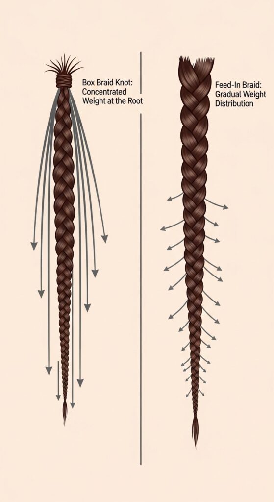 This is crucial for fine-haired friends! Box braids concentrate the weight of the extension at the root knot. Over a very long period, this constant pull can be stressful on that specific section of hair.
