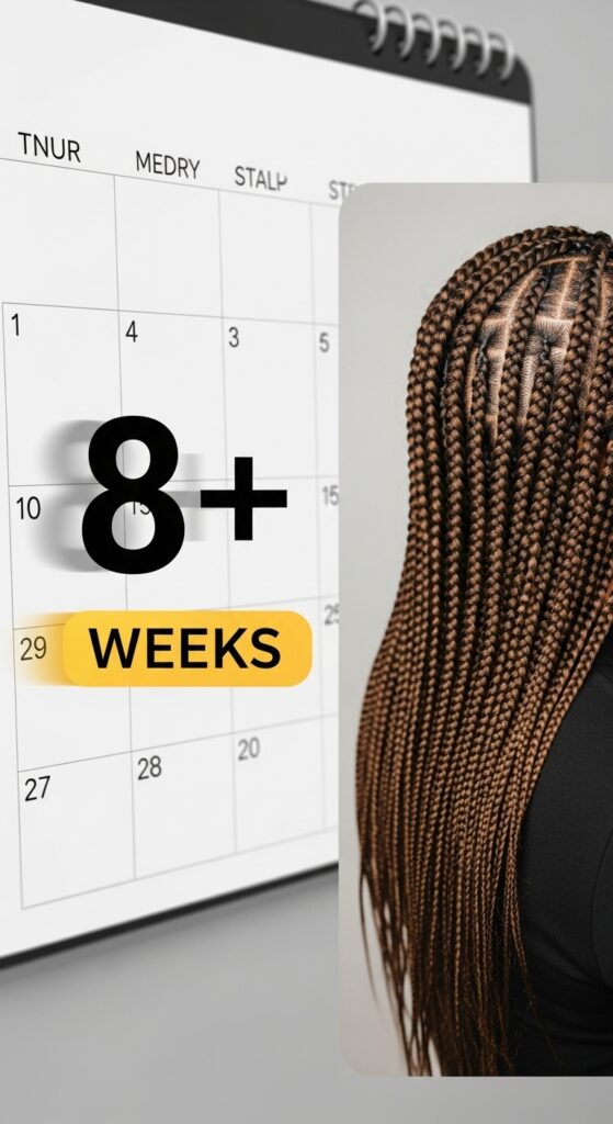 With feed-in braids, I easily hit the 8-week mark comfortably. The take-down is easier on my hair, too. For me, the extra cost and install time are worth the comfort and hair health. It’s a personal trade-off!