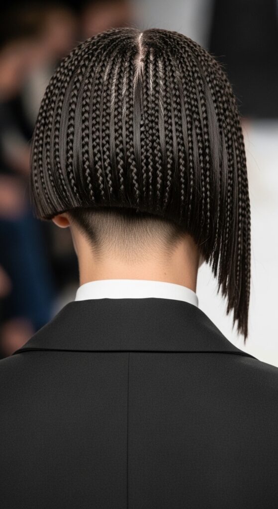 Braids are amazing for trying other trending shapes. Want a braided version of the asymmetrical lob or a vampire haircut with dramatic face-framing pieces? Feed-in braids, with their natural scalp, can create a more realistic “cut” effect.