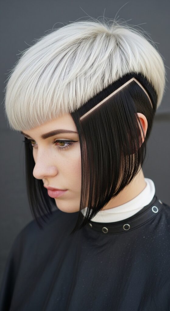 This works best on very short, precise cuts where the color lines can be kept clean. It’s a high-impact way to show off the architecture of your cut and your fearless personality.