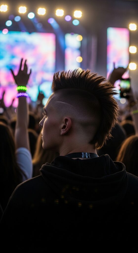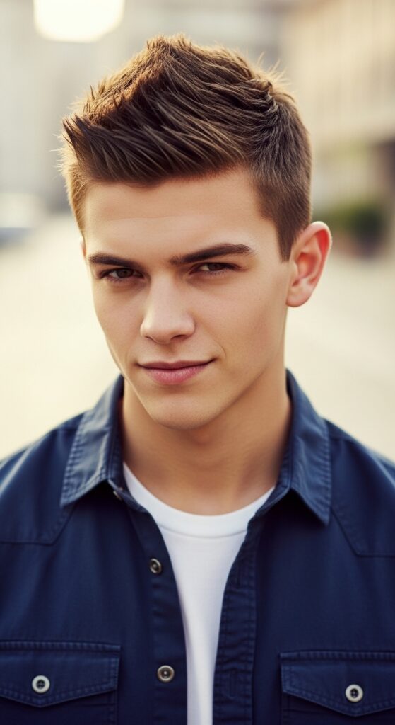 You don’t need to shave your head to rock a hawk. A textured crop is the perfect base. The sides are kept shorter (or faded), while the hair on top is left longer and textured to spike up.