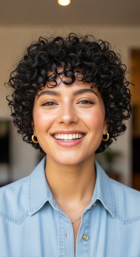 If you have natural curls, a textured crop is a game-changer. It removes weight, maximizes bounce, and lets your curl pattern shine. The shape is round and full, framing your face beautifully.