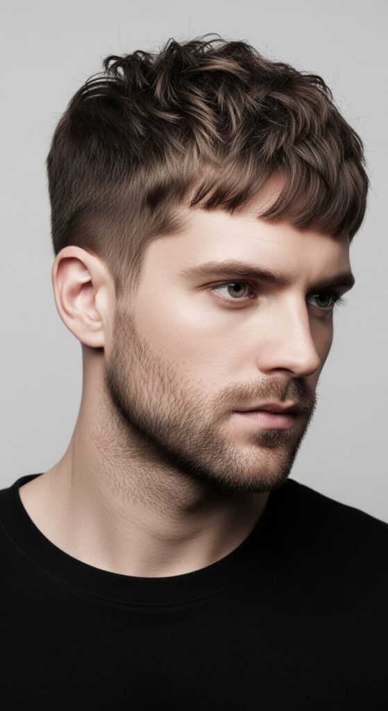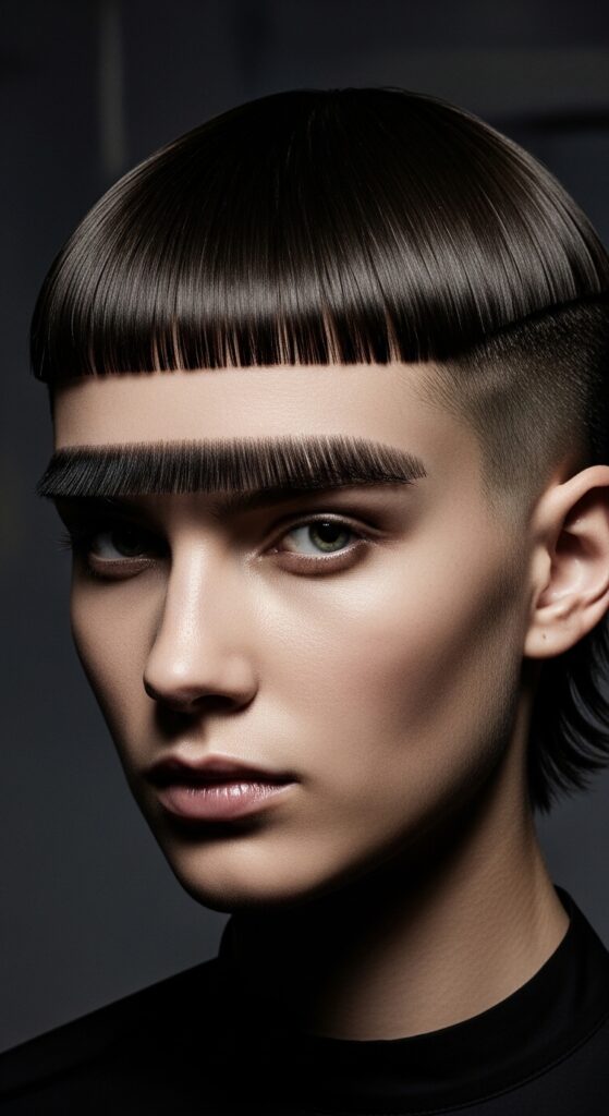 For the truly bold! This look pairs an ultra-short, blunt bang with a textured crop at the back and sides. It’s graphic, architectural, and makes a major statement. It’s a standout choice for 2026 hairstyles that play with shape.