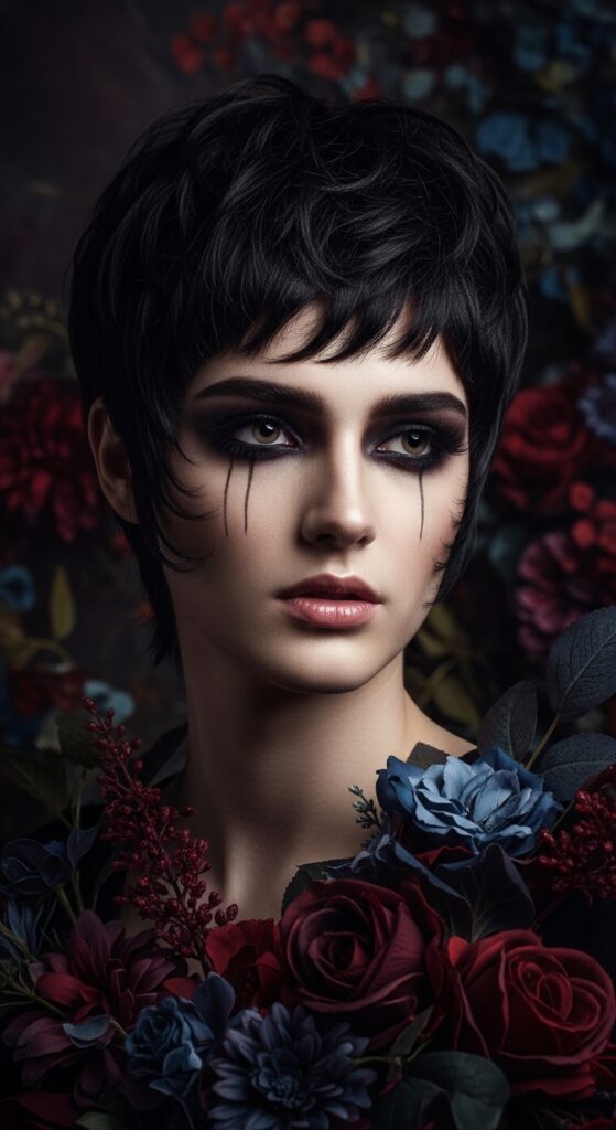 Romantic goth hairstyles aren’t just for long hair. A dark, textured crop with soft, face-framing layers captures the vibe perfectly. It’s mysterious and beautiful, not scary.