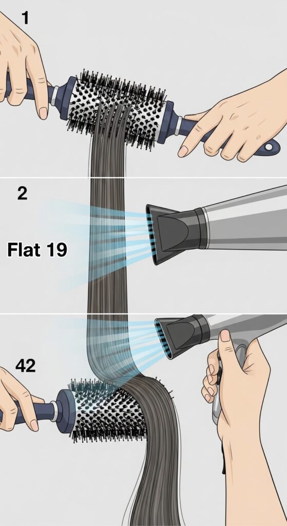 Second, don’t take sections that are too thick. The magic is in smaller, manageable sections. Finally, be patient. Spend the extra 5 minutes at the roots—it makes all the difference for all-day hold.