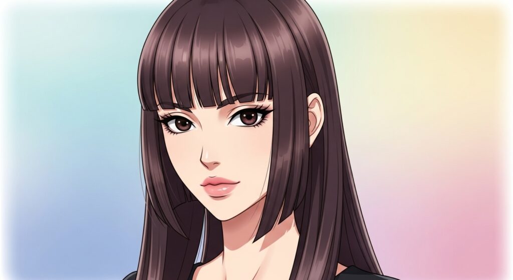 The traditional hime cut is bold. For a heart shape, we adapt it. Keep the front sections (your curtain bangs) a bit softer and more blended than a stark, blunt block.