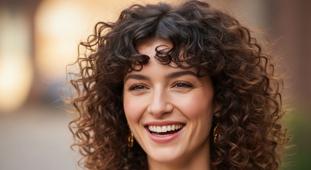 If you have curls, lean into them! Curly curtain bangs are a game-changer. They spring up and create beautiful volume around the temples.
