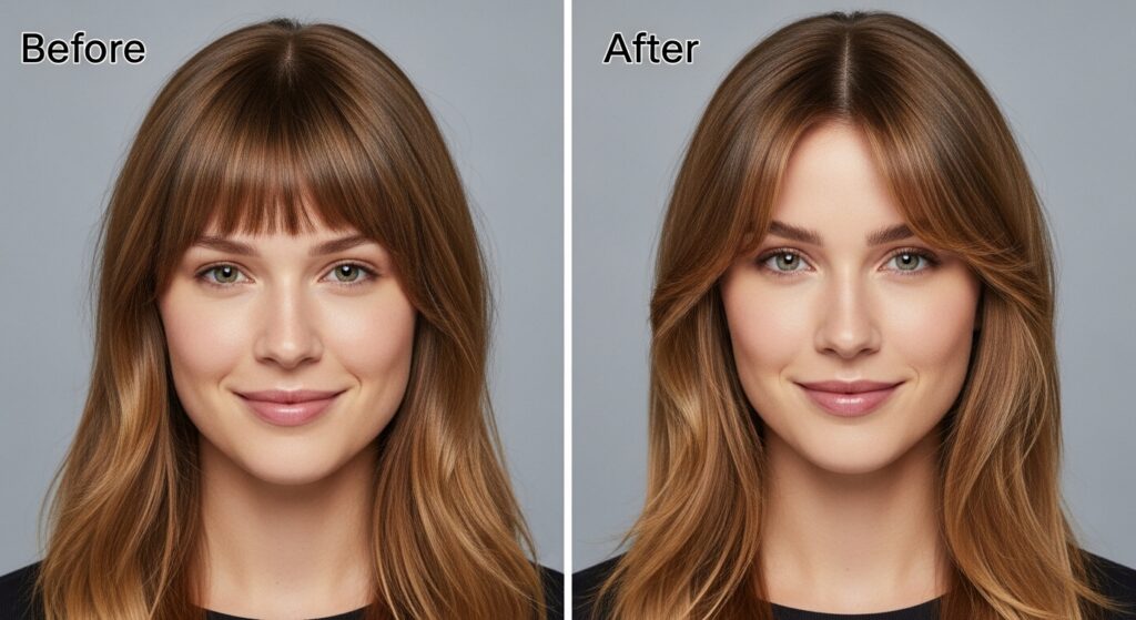 It’s easier than you think. After washing, blow-dry your bangs first with a round brush, directing them outward to create the “curtain.”