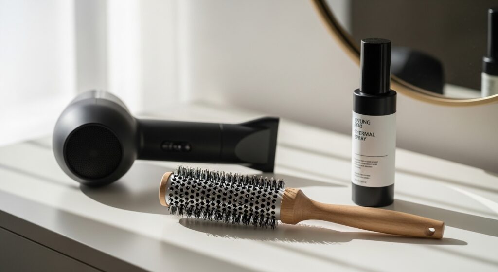 You don’t need a shelf full. Just three heroes: a texturizing spray for piece-y looks, a lightweight oil for shine on the ends, and a heat protectant.