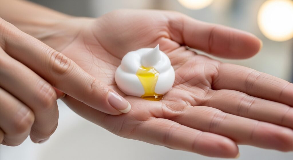 If you fear dryness, mix your palm-sized amount of mousse with ONE single drop of lightweight hair oil (like argan or marula). Rub your hands together to combine.