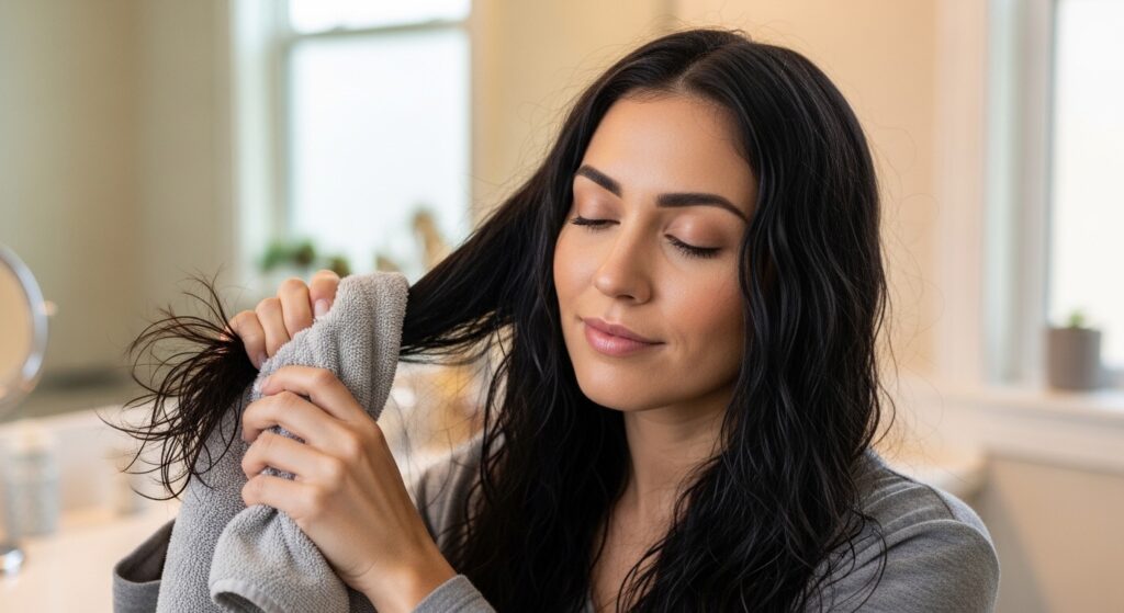 Resist the urge to scrub your hair with a towel! That creates frizz and breaks the supportive foam structure you just built. Instead, use a soft microfiber towel or an old cotton t-shirt.