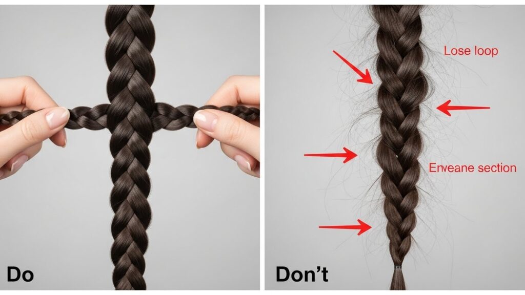 Even with clear instructions, hurdles can appear. Here are solutions to common four-strand braid challenges. Problem: My braid looks loose and messy. Solution: This is almost always a tension issue. Pull each strand firmly and consistently after every single weave. The braid tightens as you go, so don’t be afraid to pull snugly. Problem: I keep losing track of the strands. Solution: Say the pattern out loud as you go: “Left over, over, under. Right over, over, under.” Also, ensure your starting sections are very distinct. Problem: The braid twists or doesn’t lay flat. Solution: Pay attention to the direction of your “over” moves. They should be flat across the head, not angled. Practice on a hair mannequin or a friend before attempting it on your own head, as the reverse motor skills can be tricky.