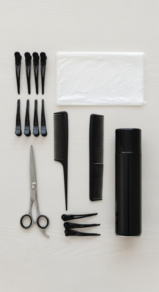 You don’t need a salon, but you do need the right stuff. Gather sharp fabric scissors, a fine-tooth comb, hair clips for sectioning, and a hair dryer on a cool setting.