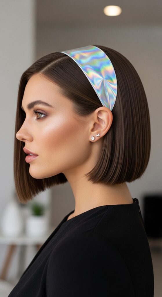 The beauty of a quiet luxury bob is its pristine simplicity. To edge it up, add a single, thin wrap in a refined metallic like brushed gold or platinum on the underside.