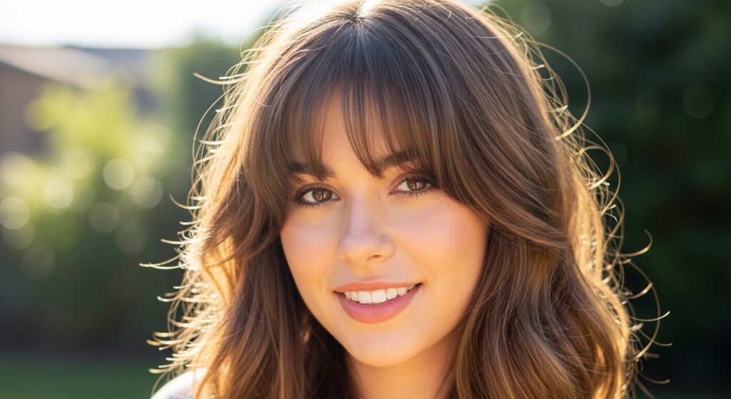 Whether you have curtain bangs or a full fringe, texture is everything. Use a small round brush or a pencil-sized curling iron to give them a slight, varied bend.