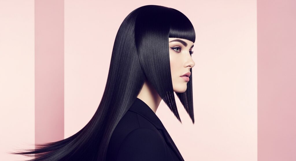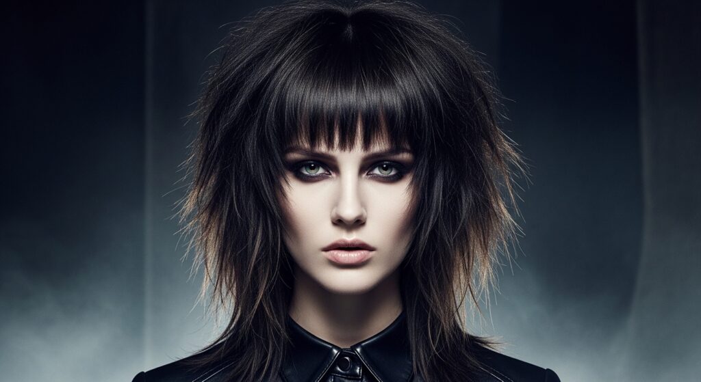 Warm a tiny amount between your fingers and pinch the ends of your layers and bangs. This defines the choppy pieces and gives that cool, “undead” but glamorous separation, a key part of romantic goth hairstyles.