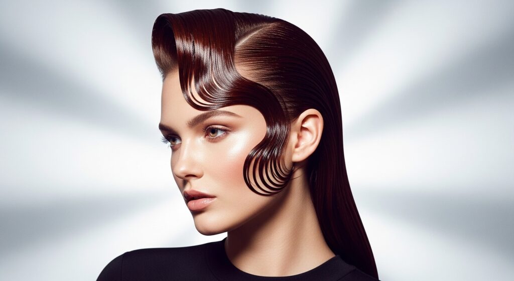 Smooth it over the surface of your hair, from roots to ends, avoiding crunching or scrunching. It creates a sealed, glossy helmet of shine that’s a major trend for 2026 hairstyles.