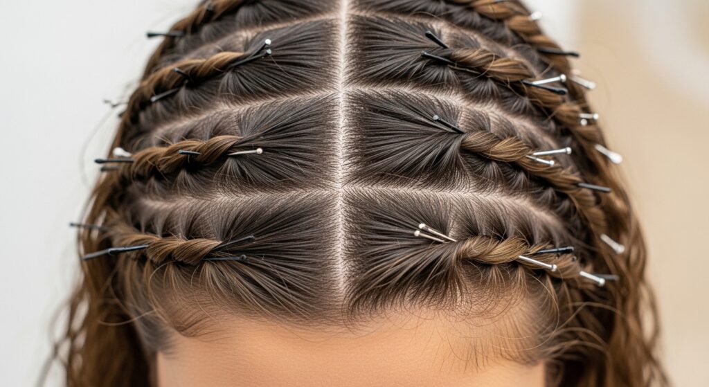 Let your hair dry completely (a blow dryer with a diffuser speeds this up). When you unpin, you get uniform, romantic waves that are perfect for that old money hair look—polished but soft.