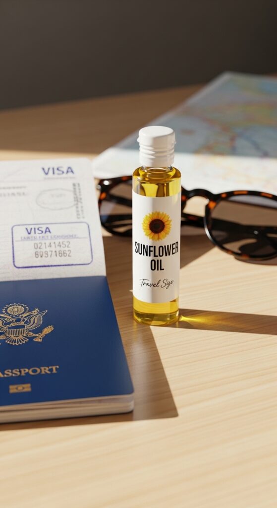 Travel wreaks havoc on your skin and scalp. Pack a small bottle of sunflower oil. A few drops at night in your hotel room can combat the drying effects of plane air and unfamiliar water.