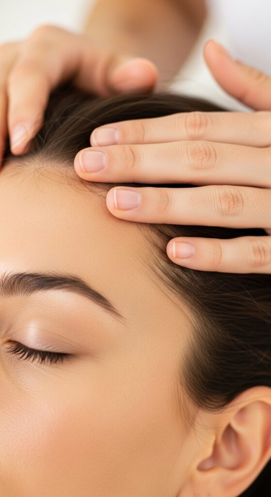 These delicate areas often show thinning first. Using oil here can help nourish the finer, more fragile hairs. Be extra gentle when massaging.