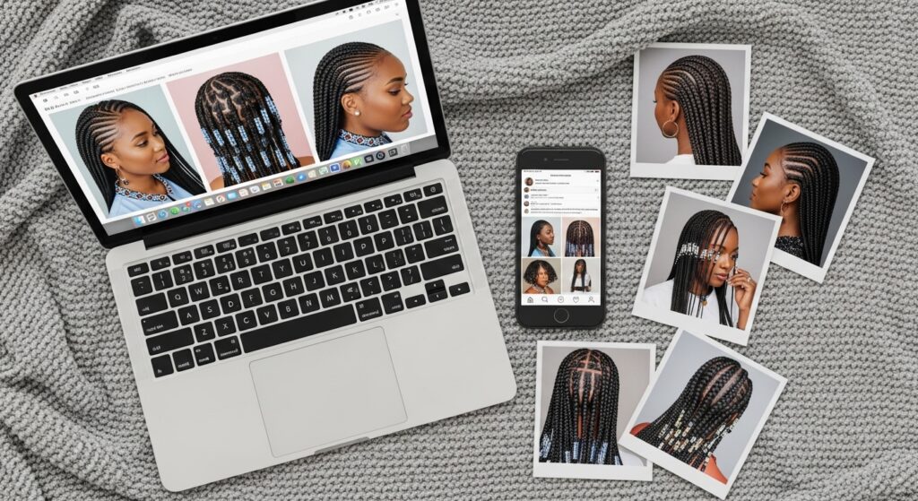Before your appointment, gather photos! Look for inspiration that shows the bead placement and braid pattern you love. Do you want the beads all one color, or a mix?