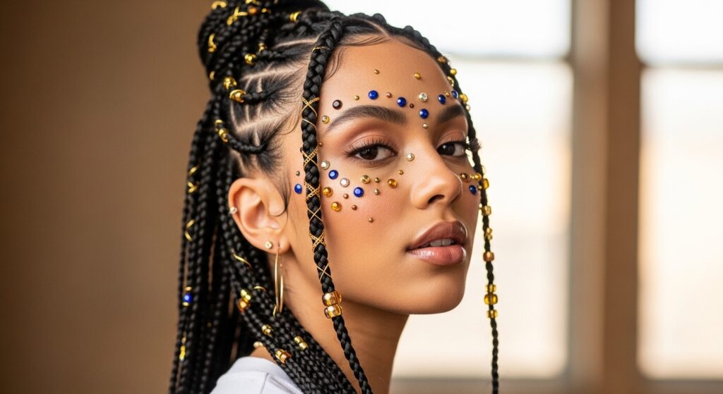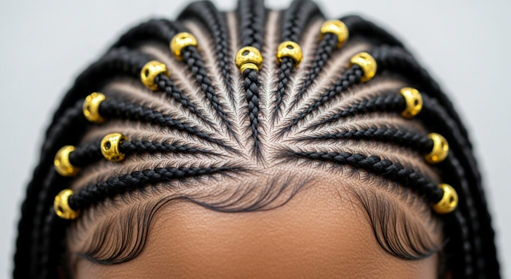 At their heart, these are cornrows inspired by the Fulani people of West Africa, traditionally featuring a central braid and intricate patterns. The “Glam 21” version elevates this by incorporating exactly 21 beads, often in gold or metallic tones, woven into the braids in a symmetrical pattern.