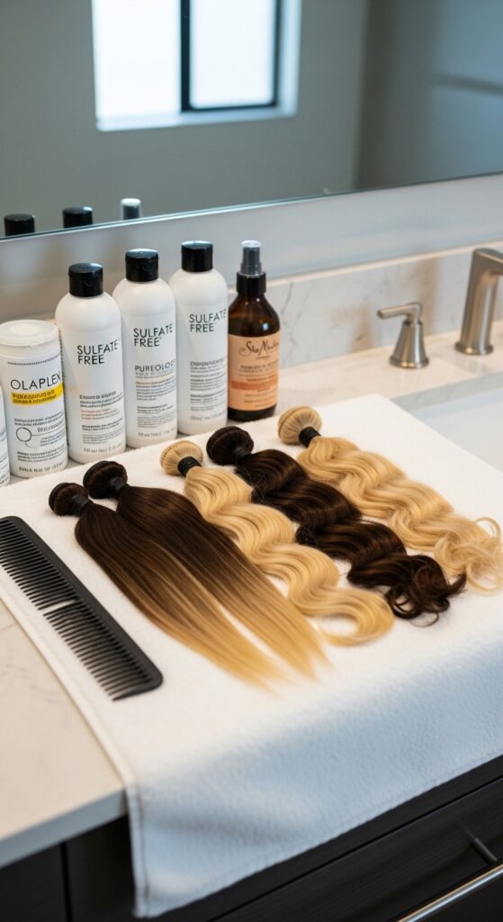 If you have layers, you might need to lightly curl the very top pieces of your own hair so they match the wave pattern of the extensions. A tiny bit of texturizing spray on your roots helps everything mesh together.