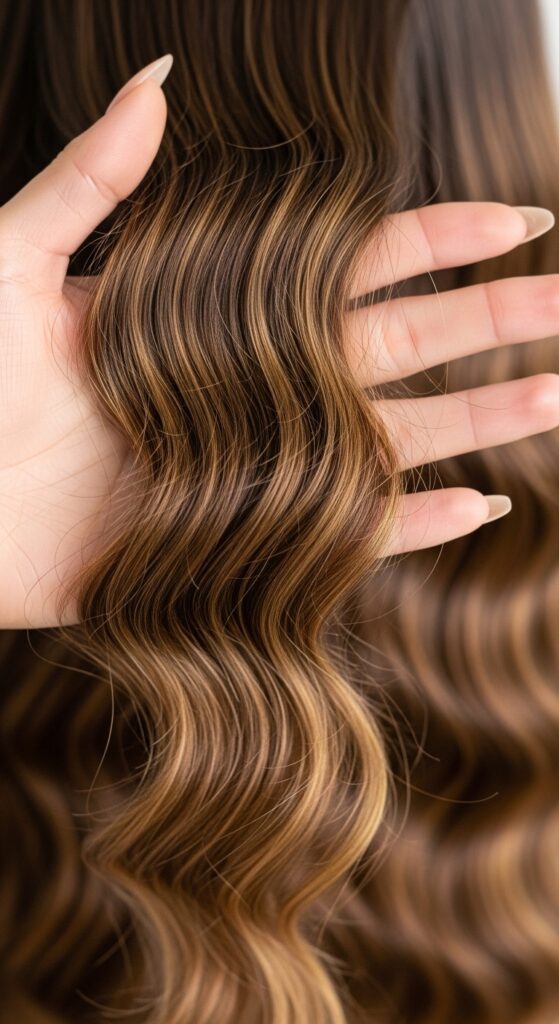 The wefts are soft and the color I chose (a dark chocolate brown) was spot-on. It felt substantial but not heavy, which is a great sign for comfort once it’s in. The wave pattern is consistent throughout, which makes styling so much easier.