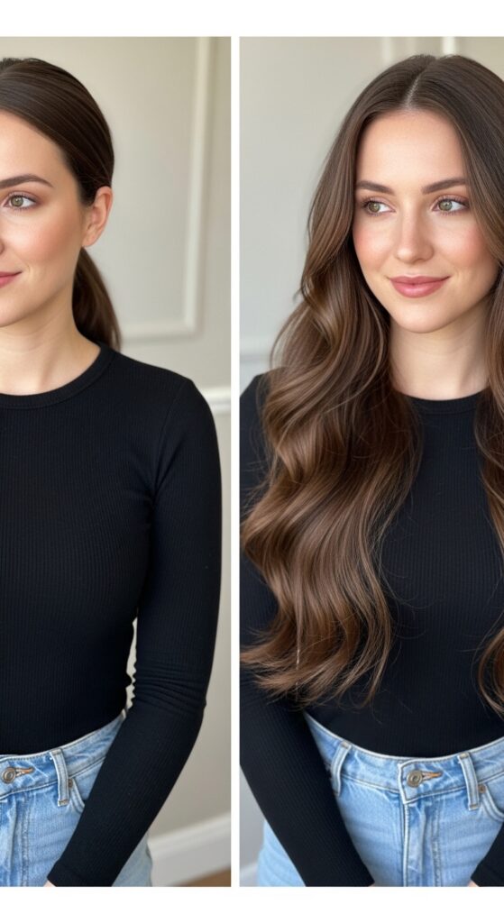 This is the biggest perk. Your daytime messy bun or ponytail can become evening glam in literal seconds. Just clip in the wefts, shake your head, and go.