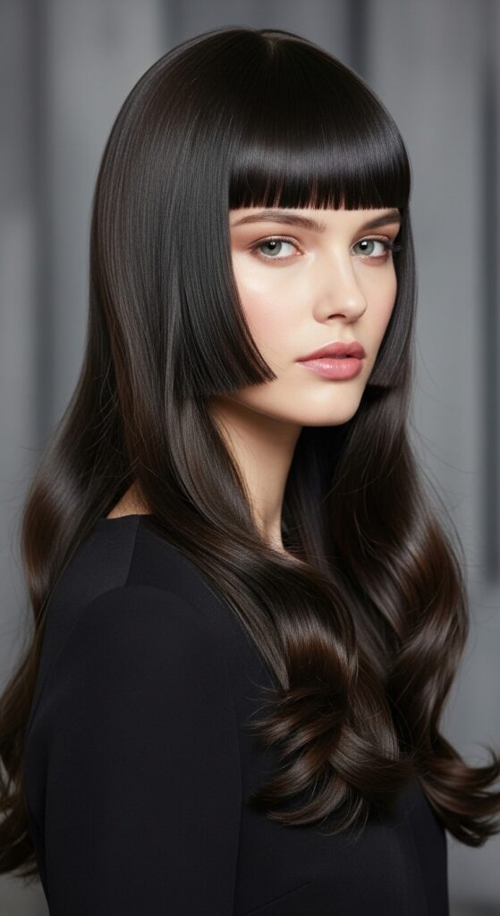 Focus on keeping the ends super crisp and letting the waves start mid-length. It’s mysterious, a little dramatic, and perfect if you have a darker hair color. It gives major modern vampire, not costume shop.