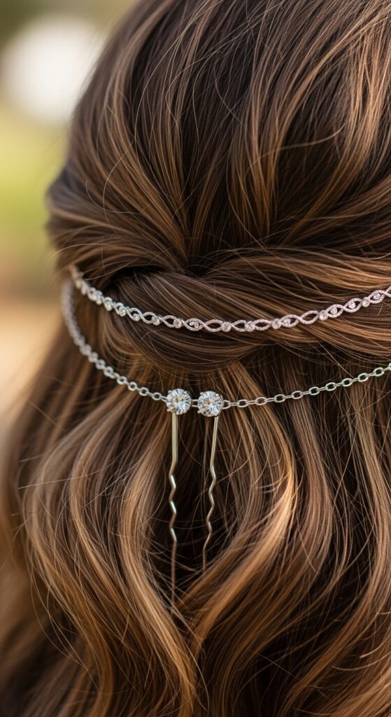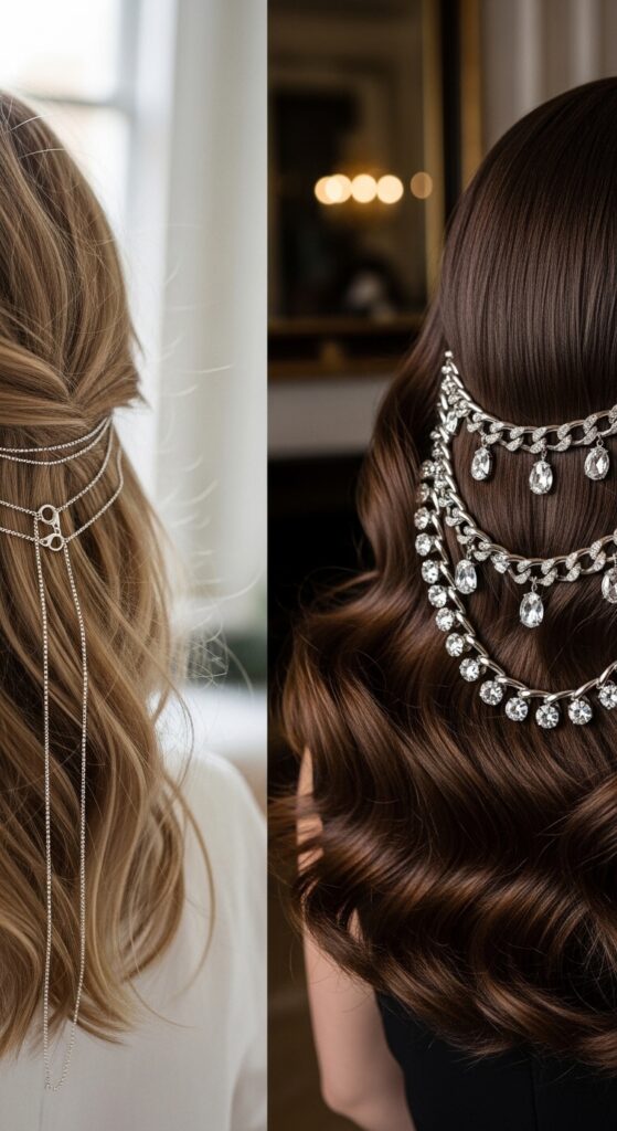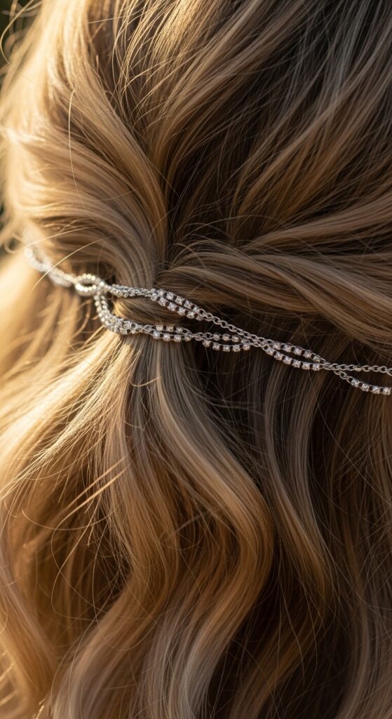 Think of them as the jewelry your hair has been waiting for. Draped over loose, effortless waves, they add instant glam without any of the fuss of a complicated updo. It’s that perfect blend of boho romance and modern sparkle.