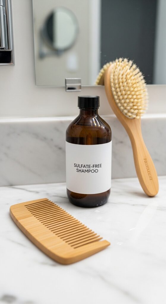 Caring for tape extensions is simple but specific. You must use sulfate-free and alcohol-free products. These keep the tape adhesive strong and the hair healthy. Wash your hair in a downward motion, avoiding the roots where the tapes are.