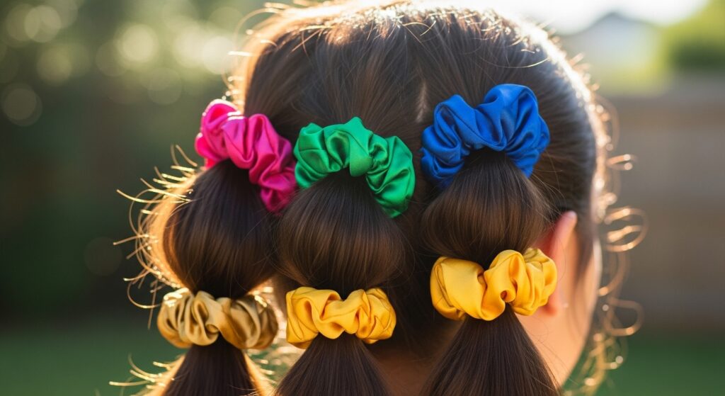 Use a large, fabric scrunchie as the base elastic. After you make each bubble, you can slide another coordinating scrunchie in between for a pop of color and texture.